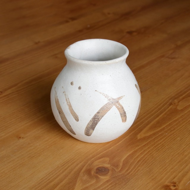 白土にベンガラで草文を描いた花器。 マット釉の控えめな存在感が花を引き立てます。 【素材】 陶器 【サイズ】 直径約 9cm (口径約 5cm) ×高さ約 10cm ※ブラウザ環境や撮影時の光の加減により色合いや質感が実物と違って見える場合があります。予めご了承下さい。 【領収書について】 BASEでは請求書や領収書の発行を行っておりません。領収書の発行をご希望の方は備考欄にてお知らせください。
